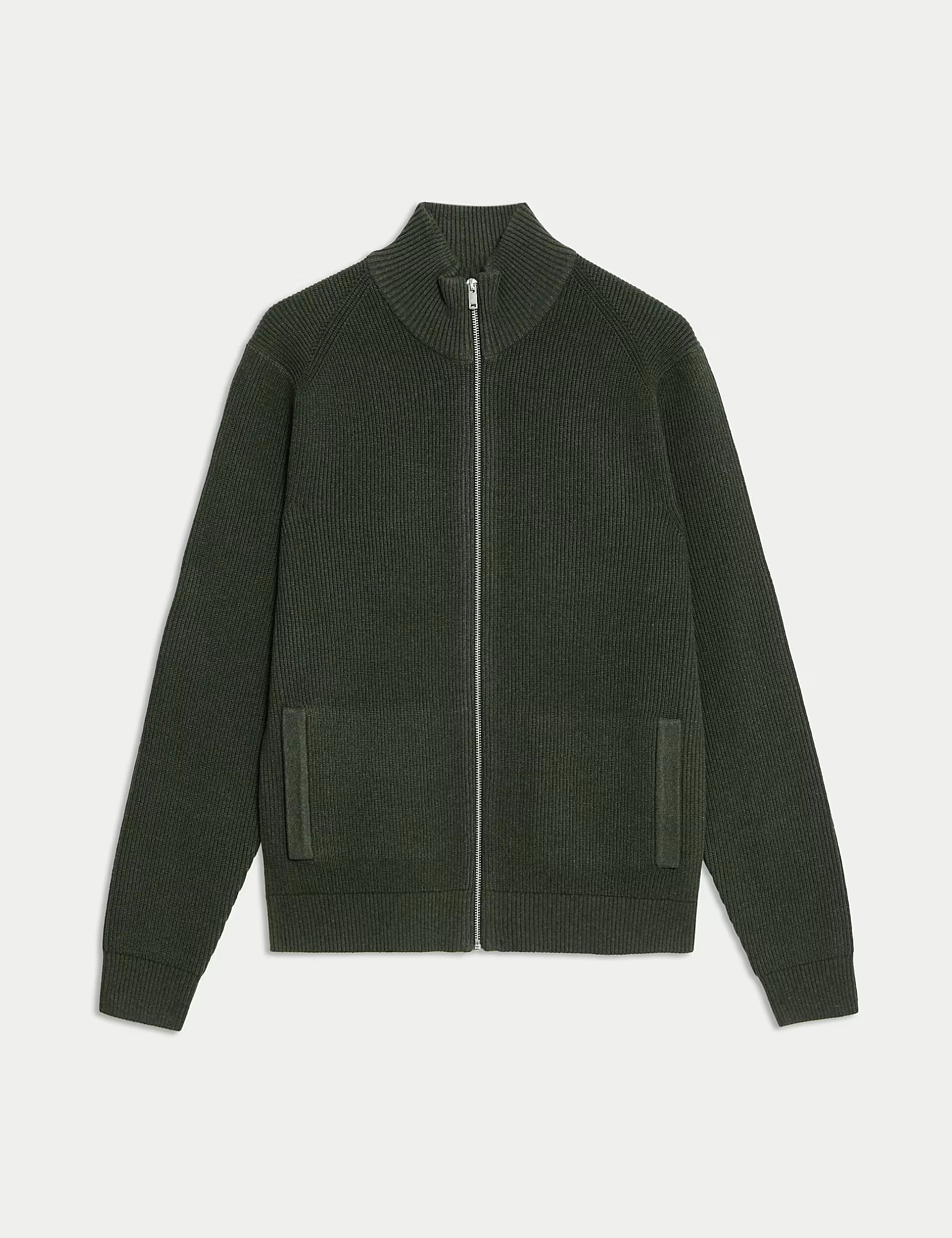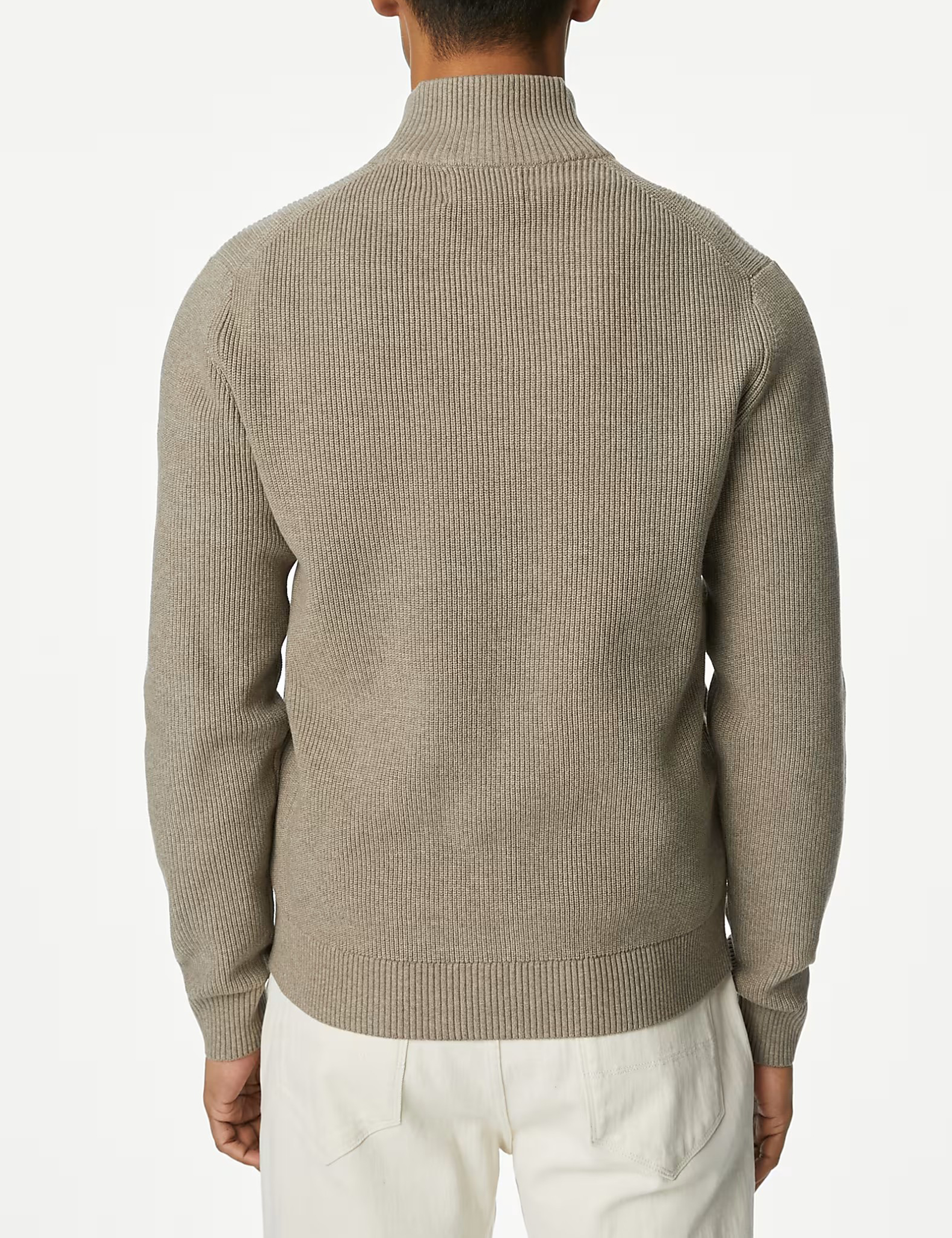 This breathable cotton-blend jumper has a funnel neck for an easy throw-on feel and a laid-back look. The zip up fastening helps to trap in warmth. Fabric ribbing adds character and texture to any outfit.