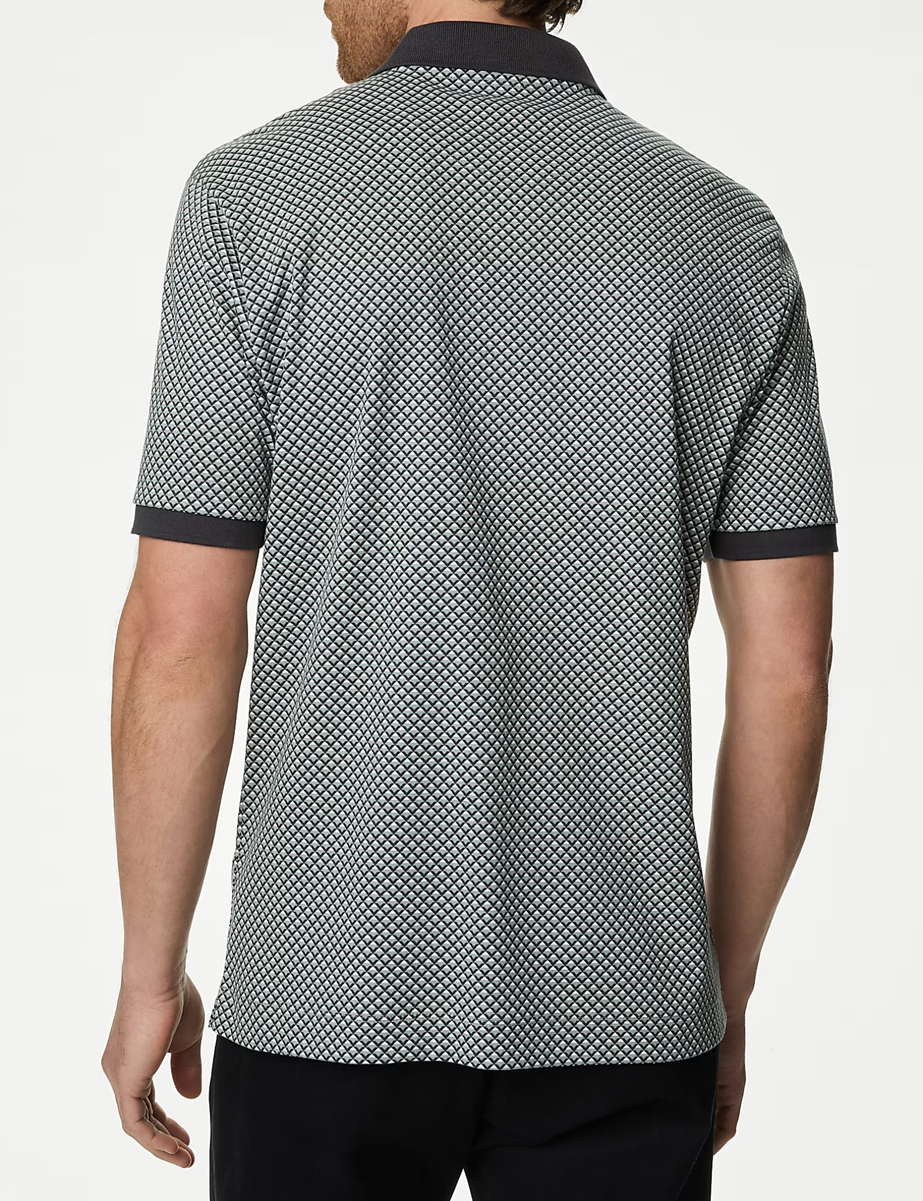 With its intricate geometric print and contrast colour block trims, this eye-catching polo shirt will add a contemporary touch to your casual outfit options. It's cut to an easy regular fit from breathable interlock pure cotton fabric, which feels soft and smooth against your skin. Button-up fastening.