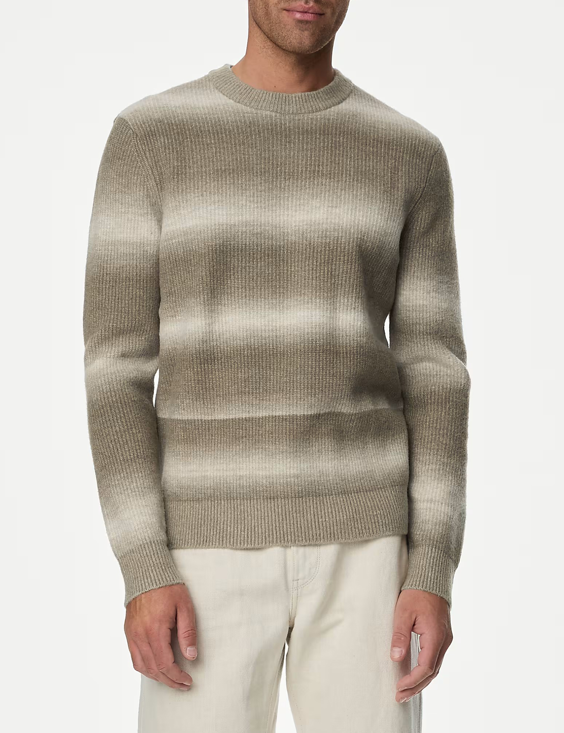This Supersoft jumper with a touch of wool will make a stylish addition to your casual wardrobe. It's made in a comfy regular fit with a classic crew neck. The bold ombre striped pattern gives it a standout look. Added stretch and a ribbed hem and cuffs ensure it sits close to your body.